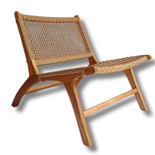 DESCRIPTION : TEAK WOOD ON FRAME, SINTETIC ROPE ON SITTING AND BACKREST